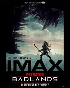 20th Century Studios released Predator: Badlands in Theaters in IMAX, Dolby Cinema, RealD (3D), Cinemark XD, 4DX, ScreenX and premium screens on November 7, 2025.