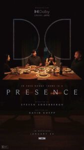 In Presence, a family moves into a suburban house and becomes convinced they are not alone. A supernatural force has infiltrated the house, and taken a specific interest in the couple’s daughter.