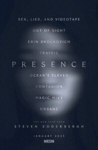 It’s said that the film is told “from the perspective of the spectral entity and is primarily interested in dramatizing the issues of the people living in the home, who seem to be grappling with a lot of interpersonal problems.” Steven Soderbergh was quoted saying: “I wanted to find a different way to tell the story. Everything is revealed through the glimpses of this family that this presence sees. And the whole ghost genre element is a Trojan horse to show a group of people in danger of falling apart.” (1/24/24)
